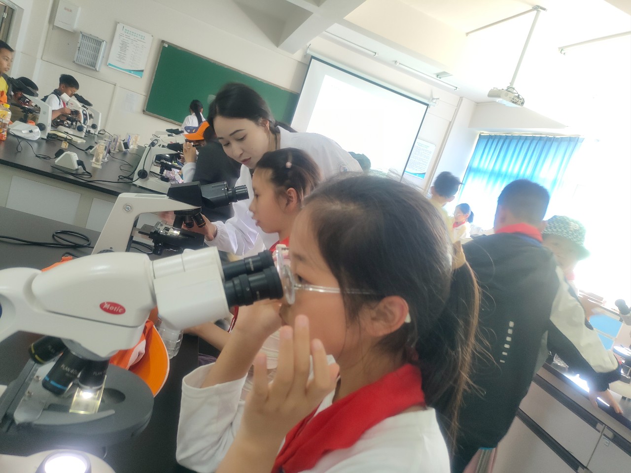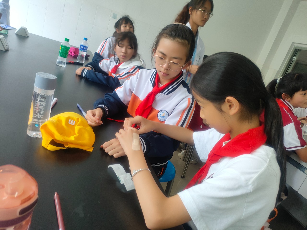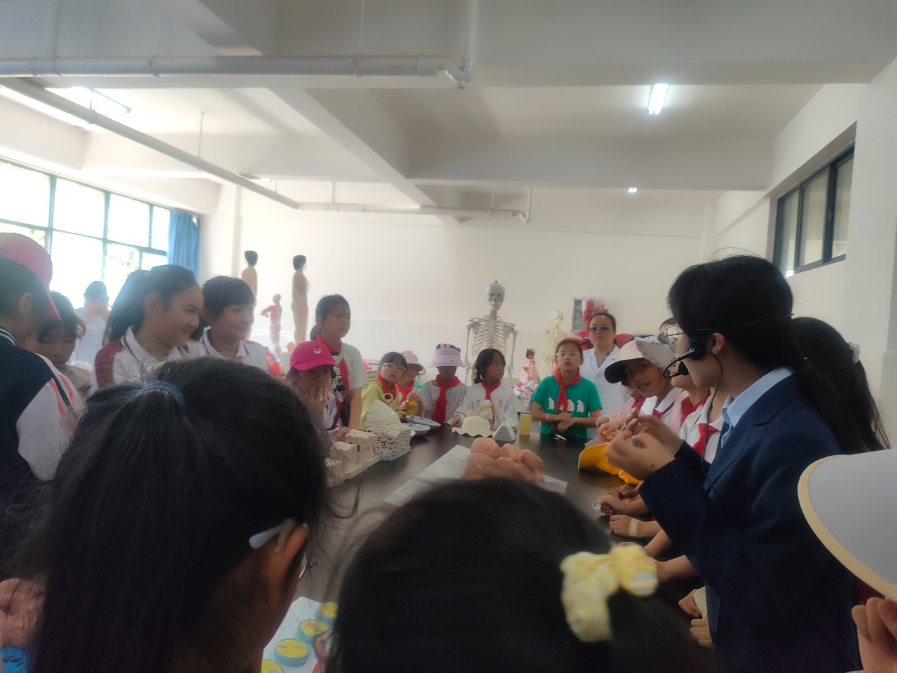 活动时,大家各展所长。人体模型室借助3D人体模型和塑型、泥塑标本等,带领学生们认识人体结构,生动讲解骨骼、器官的奥秘;生理检查室从听觉、视觉等多角度出发,让学生们了解更多身体传来的讯息;膳食营养室运用食物模型与蛋白质、糖类的化学反应,让学生们直观感受生命的化学基础;疾病研究室生动演绎创伤的产生与处理方法;微生物与寄生虫研究室利用显微镜,展示寄生虫、微生物的微观世界,讲解免疫系统的防御规则。