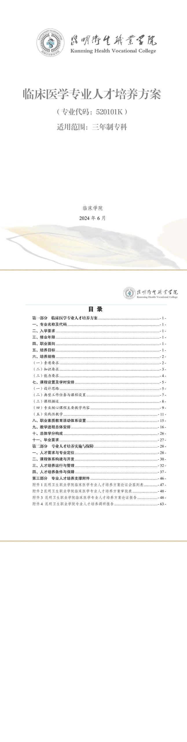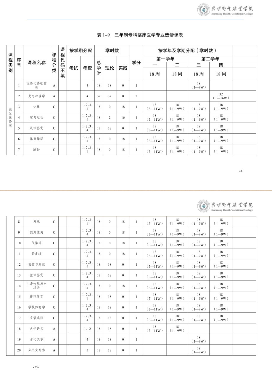 XK星空三年制专科临床医学专业人才培养方案(供24级三年制专科学生使用)