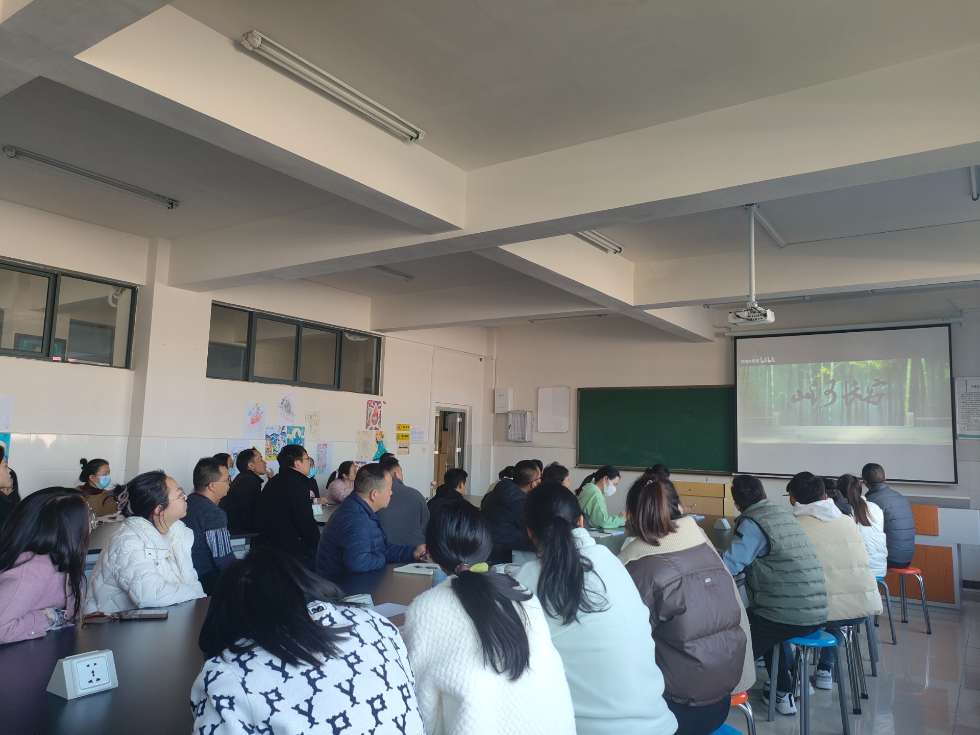 活动开始,教师们集中精力,认真观看第十个全民国家安全教育日主题宣传片《山河长安》,欣赏万家灯火点亮时的霓虹斑斓,聆听“长安一片月,万户捣衣声”的声声回响,感受“国家安全,我自心安”的平和与坚定。