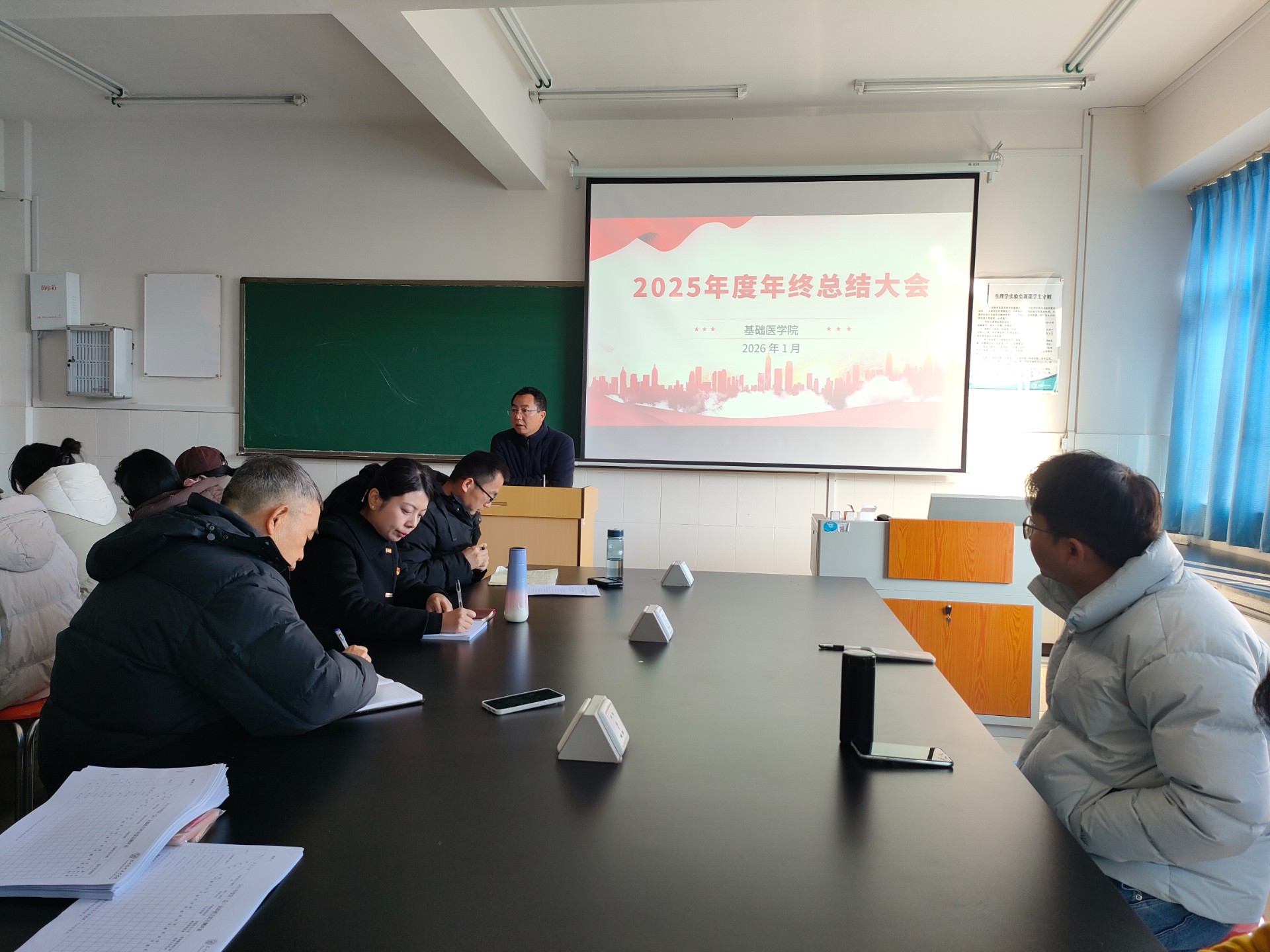 1月21日上午,基础医学院组织全体教师开展2025年度总结大会,会议由基础医学院院长马鸣主持,学院全体教师齐聚一堂,旨在全面回顾本学年各项工作成效,深入剖析发展中的问题与不足,明确下一年度工作方向。