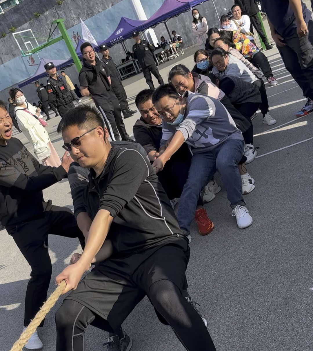 为进一步丰富教师业余文化生活,增强团结拼搏精神,提升全体教师的凝聚力,创建和谐融洽的文化校园,校运动会期间,学校组织全校教职工进行了拔河比赛。本次拔河比赛由学校体育老师担任裁判,以部门为单位参加比赛,每队20人,男女各10人,各部门精心组织,踊跃参赛。