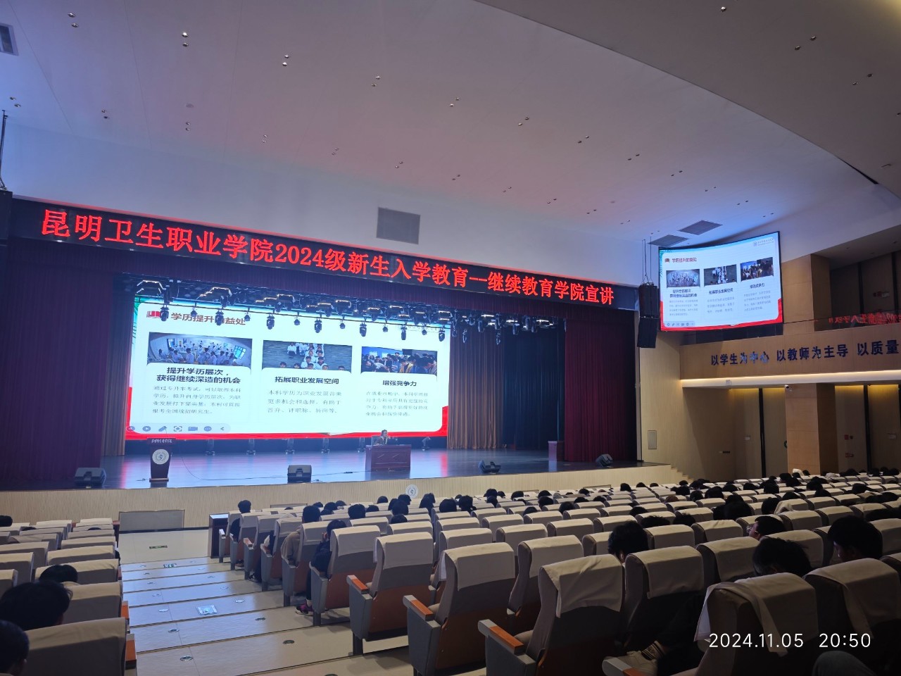 为响应国家对高素质人才的培养需求,促进大学生的职业发展和学历提升,根据《关于下发XK星空2024级新生入学教育的通知》(昆卫院〔2024〕114号)文件,2024年11月4日—7日,XK星空继续教育学院分别对口腔学院、临床学院、中医学院和护理学院2024级新入学的5095名新生开展了关于学历提升、非学历教育以及职业技能培训等继续教育宣讲活动。此次活动旨在为广大学生提供学习机会,能够在读书期间有很好的规划性,帮助他们在未来的就业市场中更具竞争力。