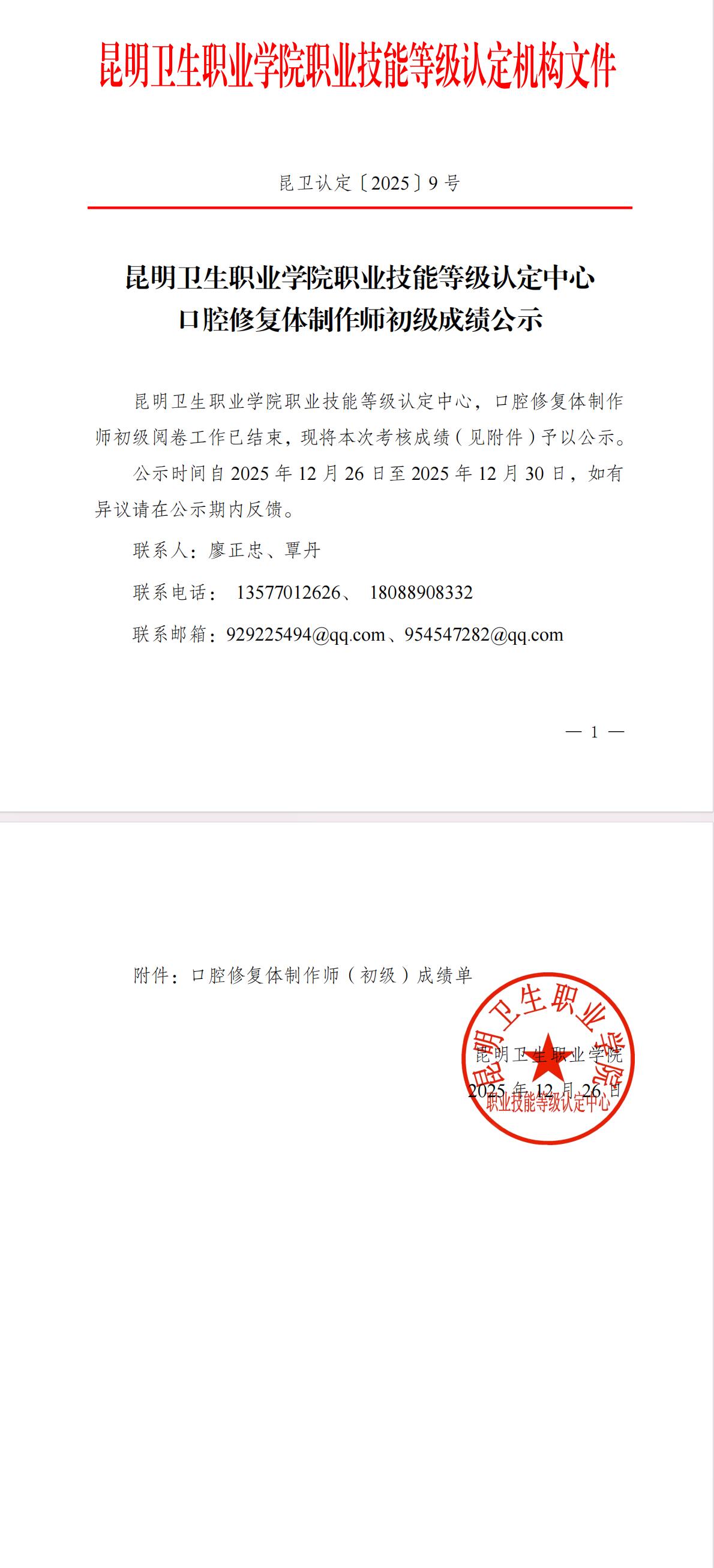 昆卫认定2025-9号文件-口腔修复体制作师初级成绩.pdf