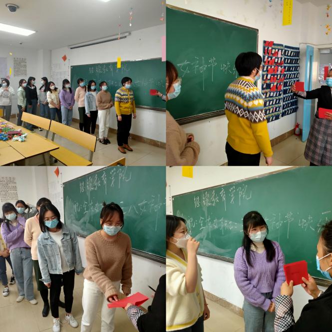 为丰富学院女教职工的业余文化生活,缓解紧张繁忙的工作压力,提高女教职工的整体素质,增强女教职工的工作积极性和创造性,借着这个机会,继续教育学院全体教师于2022年3月8日下午15:00--17:30在继续教育学院109教室举办“三八”妇女节庆祝活动,此次由继续教育学院院长官文焕老师主持。