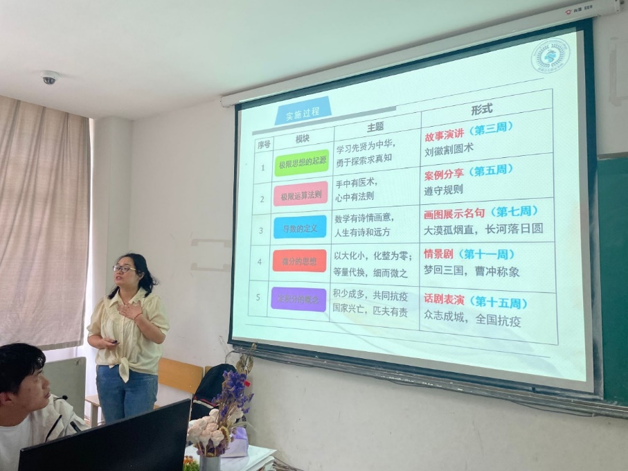 另一方面,谷艳萍老师以“函数”为例,和教研室其他教师交流了在授课过程教师的注意事项,以及在授课中如何巧妙的融入思政元素,达到育人效果。