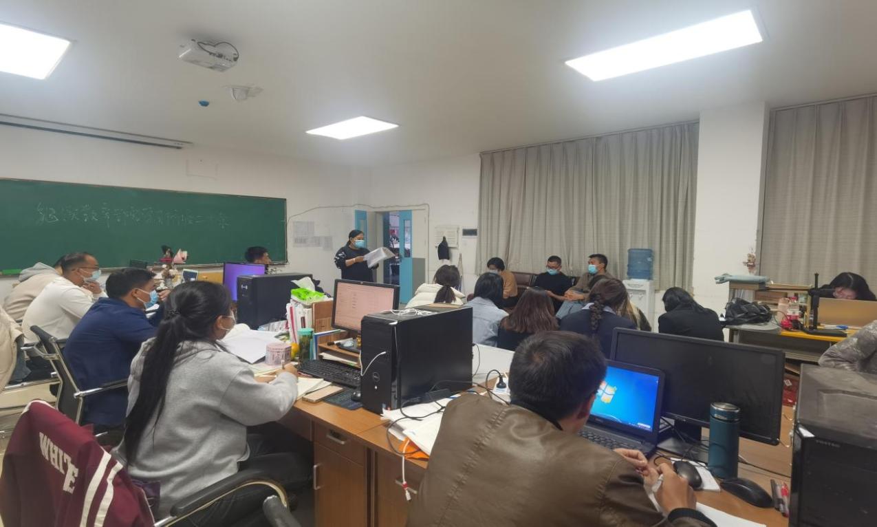 2022年11月16日下午,继续教育学院组织全体教师开展防疫二十条措施的学习会。继续教育学院院长官文焕主持并作解读。