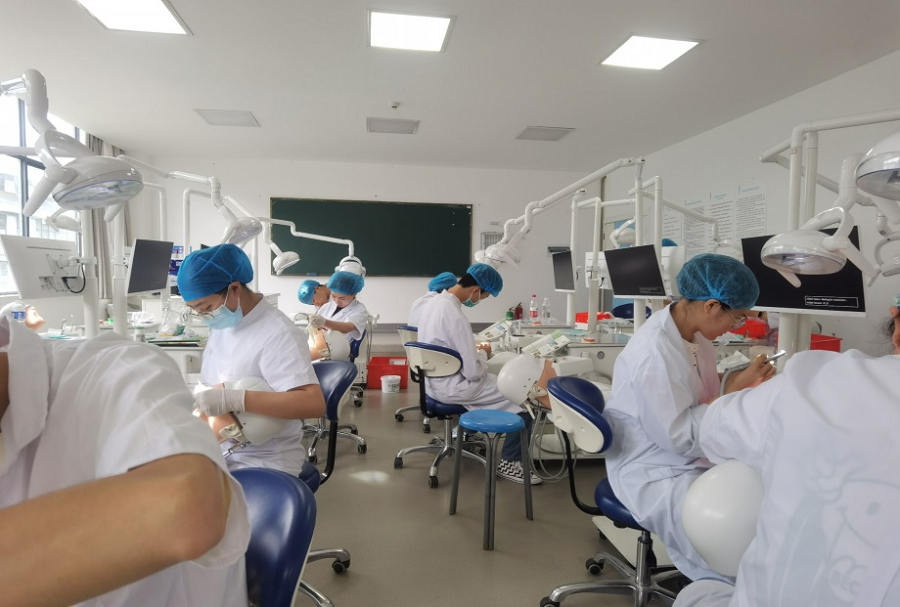 口腔学院精心组建教学经验和执考经验丰富的培训师资团队,做好各项培训筹备工作,多次组织开展集体备课,统一技能操作标准和明确组织形式。培训内容根据考试大纲制定,涵盖无菌操作、一般检查、特殊检查、检查表的填写、心肺复苏术、吸氧术、血压测量、麻醉、拔牙、II类洞制备、开髓术、铸造金属全冠牙体预备、橡皮障隔离术、口内缝合术、脓肿切开引流、取模、窝沟封闭术、龈上洁治术、病史采集、巴氏刷牙法、牙线的使用、病例分析等项目。