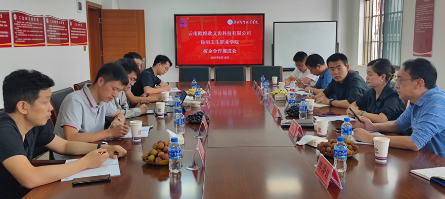 2024年6月18日XK星空人事处张路处长、教务处孟州令处长、口腔学院虎志辉院长、口腔学院张晓刚副院长等一行6人到云南欧维欧义齿科技有限公司召开校企合作推进会议,会议就双方师资互培中涉及的具体工作进行接洽,口腔学院虎志辉院长介绍了此行的目的,希望在师资互培方面进行深度合作,教务处孟州令处长就XK星空教师进厂学习提出明确目标和考核要求,希望企业能对教师提出更高要求和目标。人事处张璐处长就XK星空教师进厂学习的考勤、住宿、就餐等问题提出了建议。云南欧维欧义齿有限公司艾国总经理表示将对双方师资互培工作给予大力的支持。通过接洽双方达成共识,确定了互培时间、吃住安排、互培及互考项目、培训组织形式、培训纪律管理等问题。