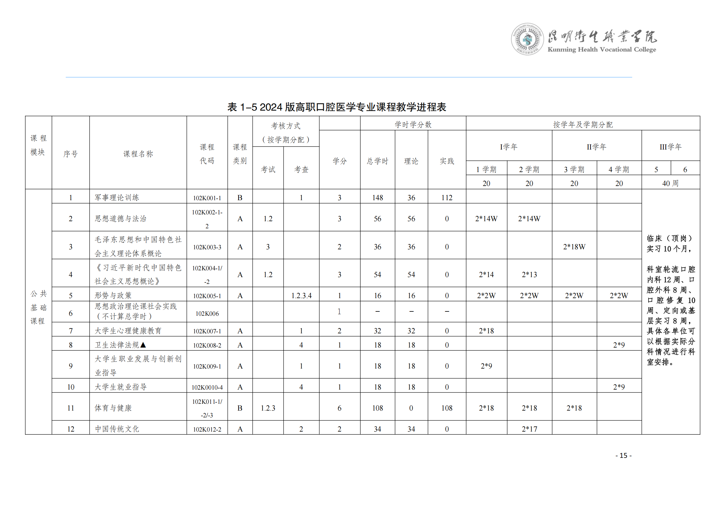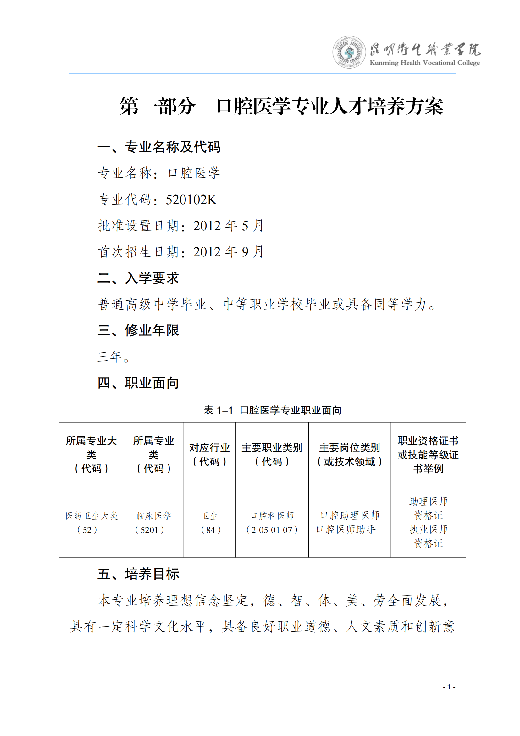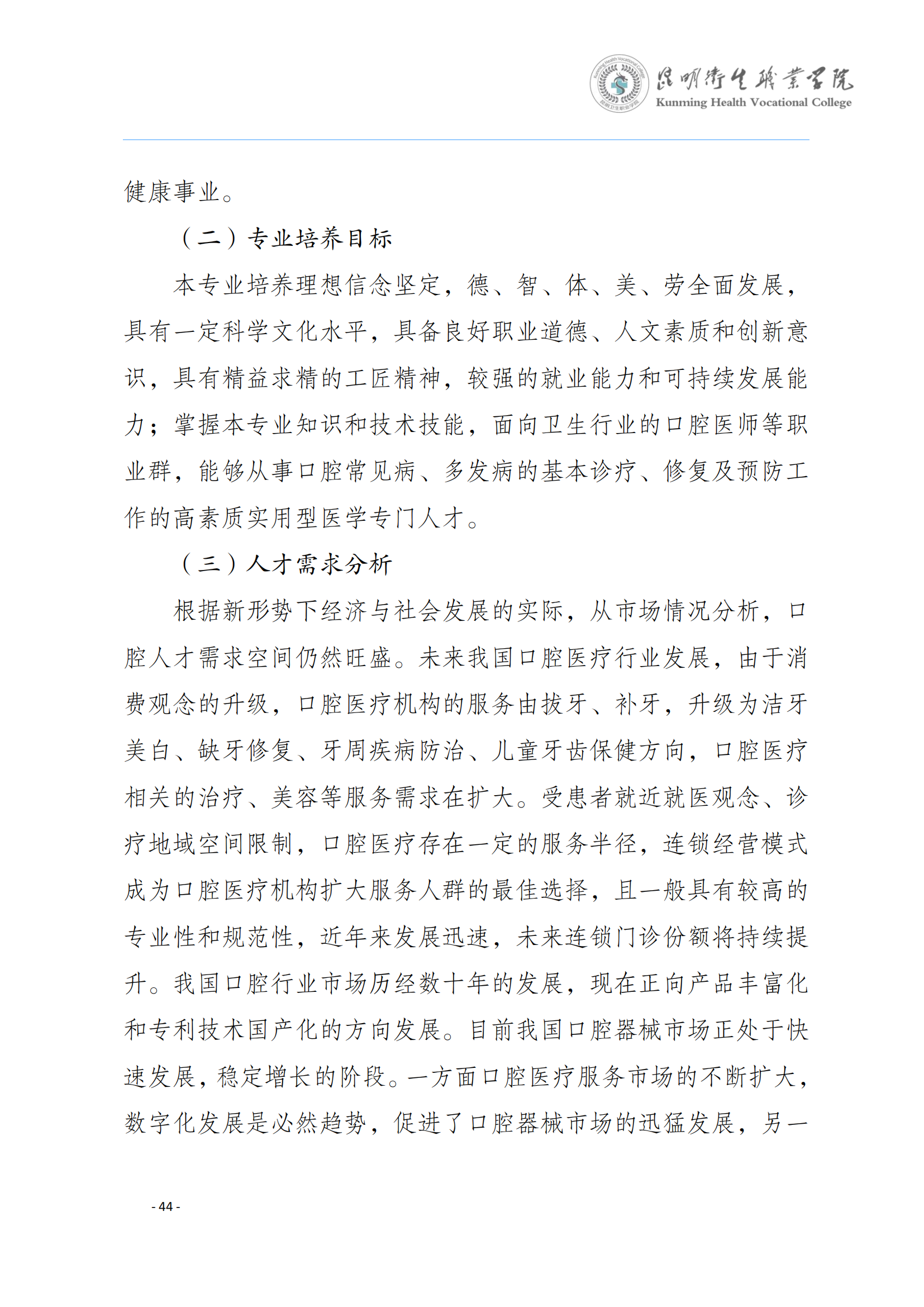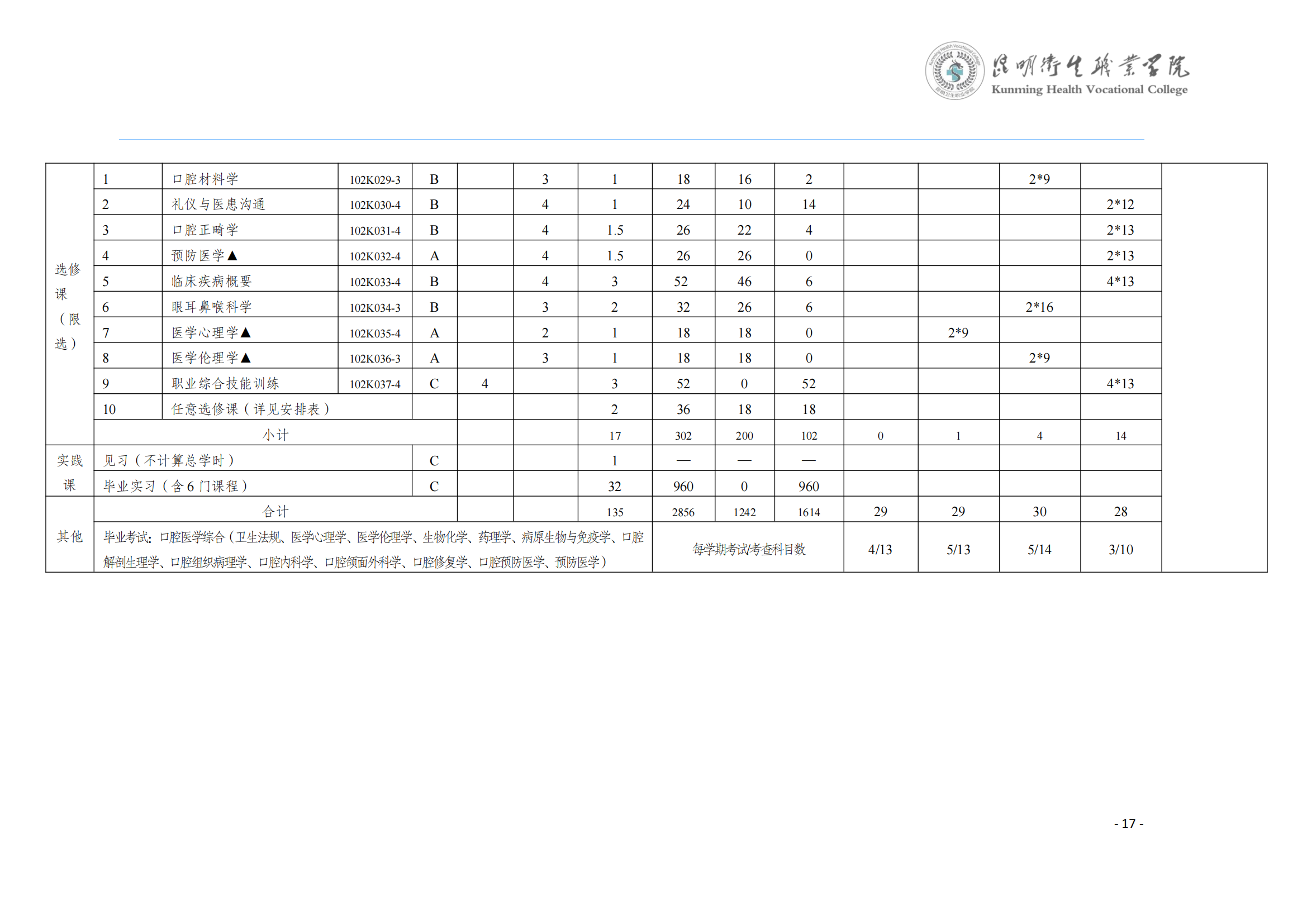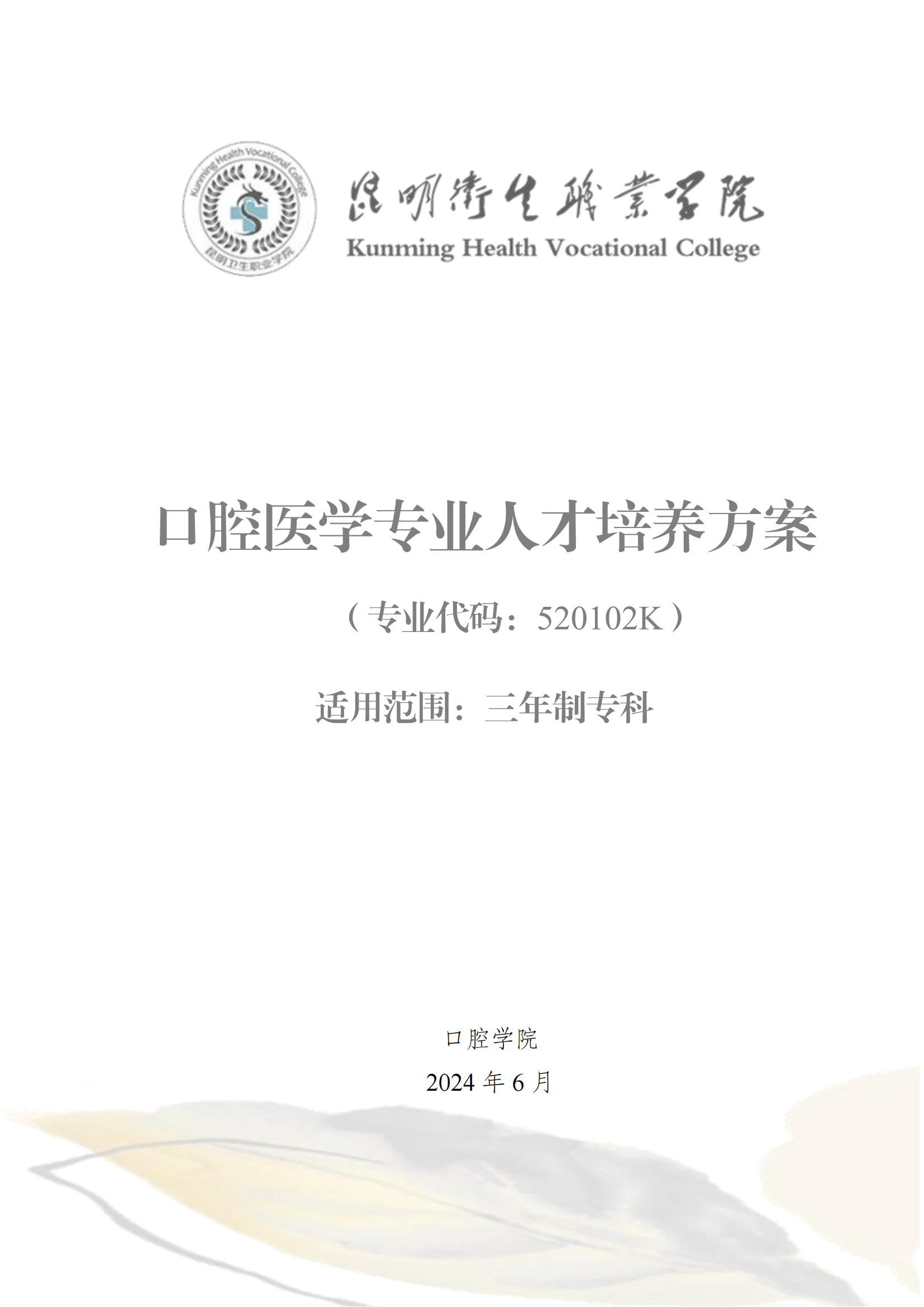 XK星空2024版三年制专科口腔医学专业人才培养方案