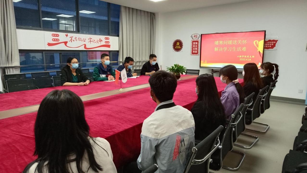 为抓好疫情防控工作,了解返校学生的学习生活情况, 4月14日傍晚,口腔学院党支部组织关怀、慰问XK星空因家乡涉疫无法如期返校的6名学生。党支书记骆毅同志与返校学生亲切交谈,详细了解他们的学习生活情况,叮嘱同学们要严格遵守学校疫情防控期间的相关管理规定,保持宿舍环境卫生整洁,常通风,强身健体,规律作息,健康饮食,增强自身免疫力。每个人都主动担负起疫情防控的责任,学习生活中如果遇到困难要及时向老师们求助。常与父母联系,让家人放心。