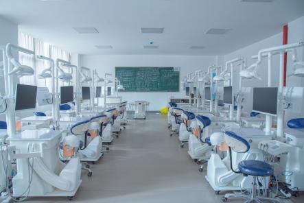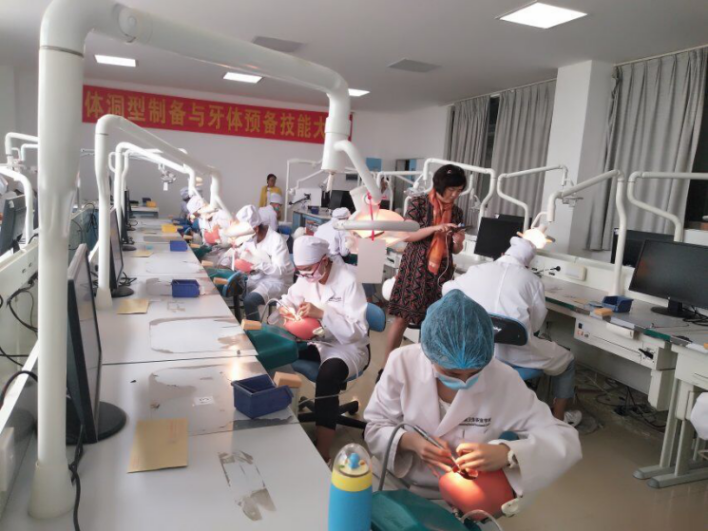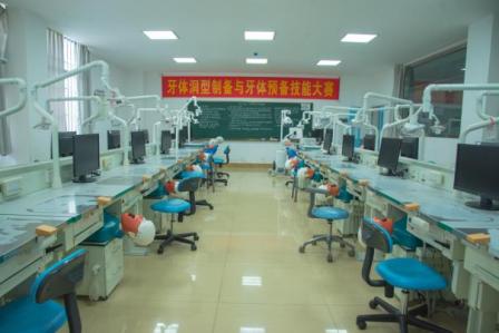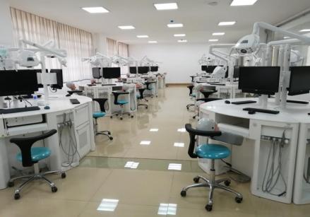 口腔医学专业校内实训基地总面积6457余平方米,设有39间实验实训室,配置有数字化高级牙科实训系统32台、口腔模拟临床训练系统157套、口腔综合治疗椅61套、数字化口腔影像CBCT教学系统3套、口腔智能化技能考试系统(OSVE)、高清数字化口腔教学示教系统及常规实训设备,实训仪器设备总价值1520余万元。为开展实训教学搭建了坚实的硬件基础。