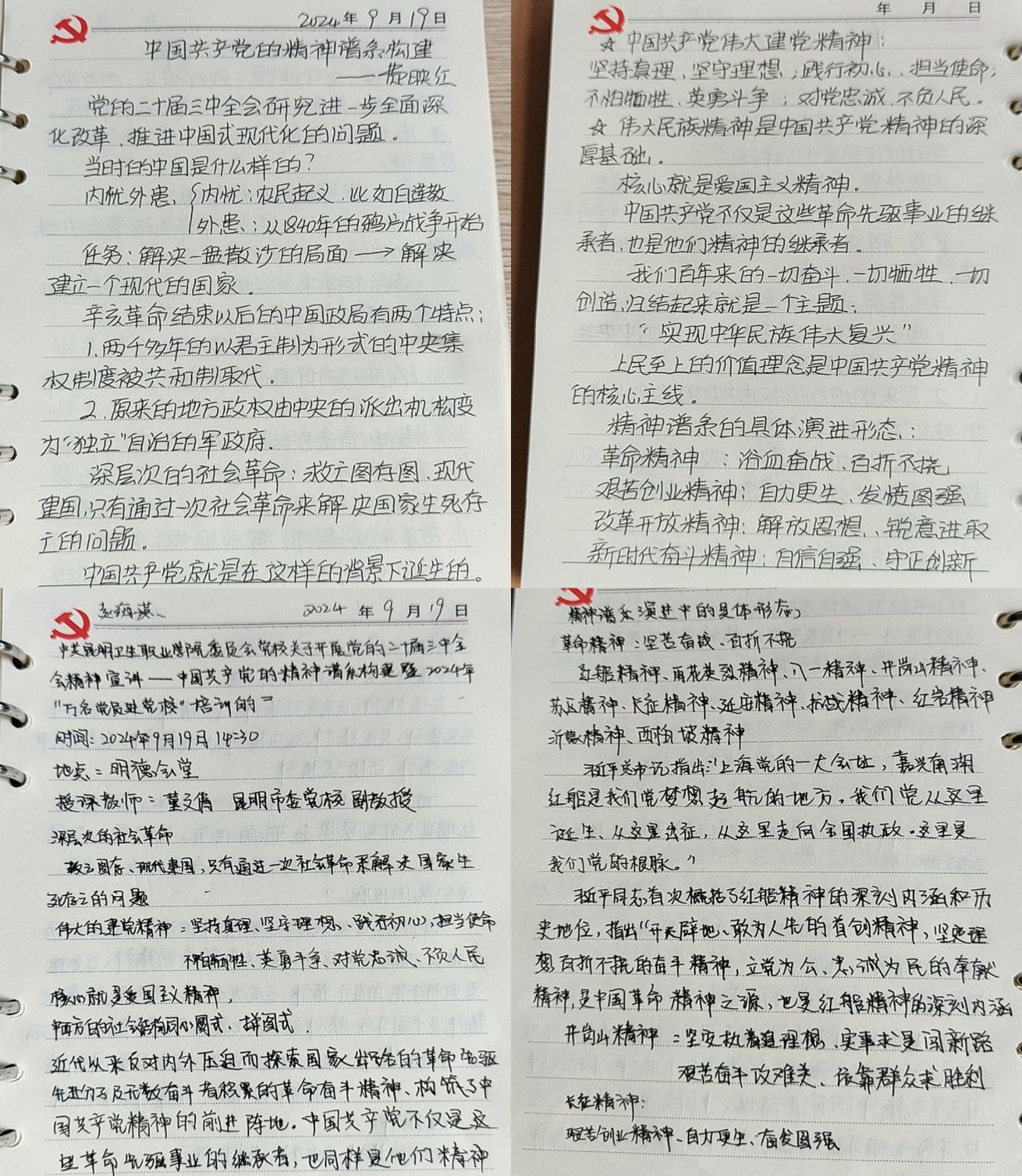 在培训中,师生们认真聆听、仔细记录,积极思考、深刻领会。大家纷纷表示,会将此次学习为契机认真贯彻全会精神同弘扬以伟大建党精神为源头的中国共产党人精神谱系结合贯通起来,把对党的二十届三中全会精神的领悟和对中国共产党精神谱系的理解转化为实际行动,融入日常的学习工作和生活中。
