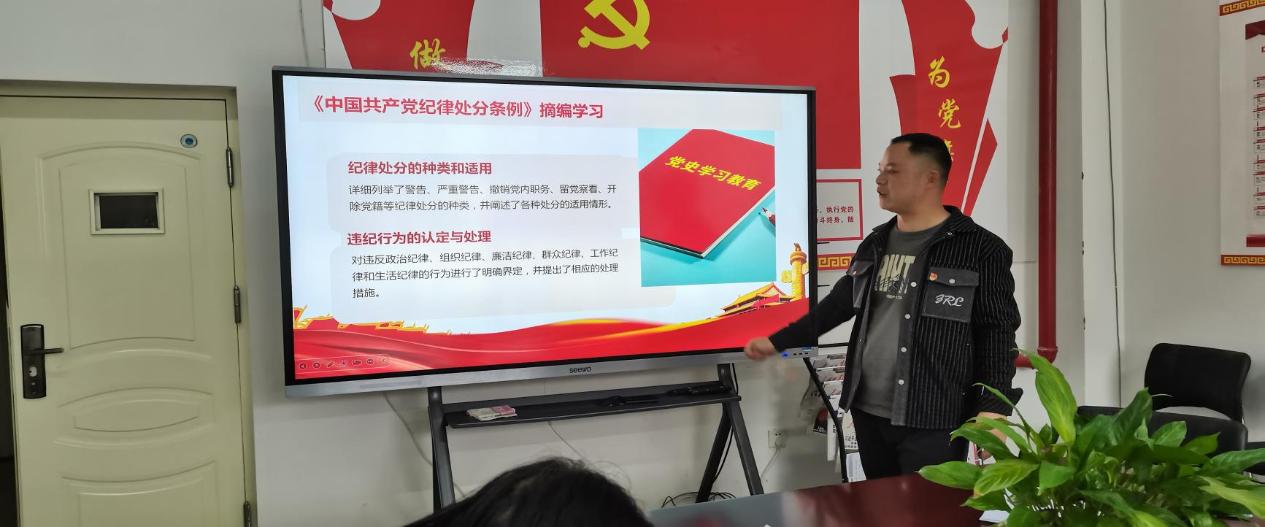党课中,支部书记余建坤同志首先带领大家回顾了党的光辉历程,特别是革命时期的重要历史事件和伟大事迹。其次深化了红色基因传承,主要讲述中国共产党的奋斗史与中国特色社会主义事业取得的辉煌成就,使支部成员更加深入地理解和认识到红色基因的重要性。最后筑牢了党员政治纪律防线,主要结合当前形势和任务,强调党员应具备的政治纪律和规矩意识,引导大家自觉遵守党的政治纪律和规矩。