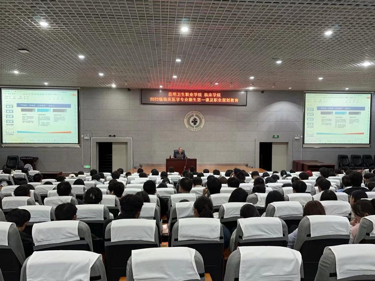 2025年9月22日,XK星空临床学院在学术报告厅举行2025级临床医学专业“新生第一课及职业规划教育”讲座。本次活动由临床学院院长王建松教授主持,2025级临床医学专业新生及辅导员共270余人参加活动。