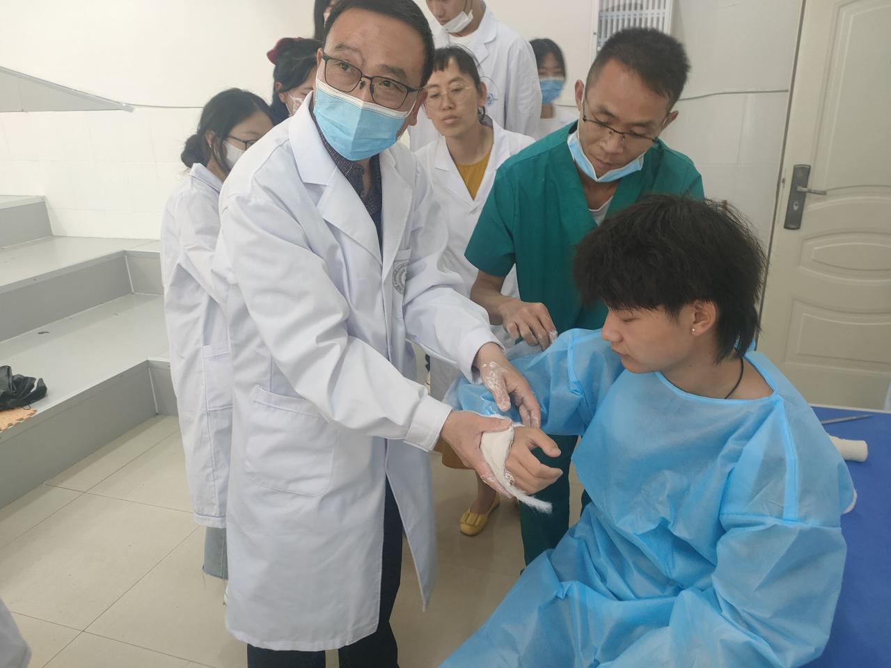 图2 张学平主任在演示石膏固定术