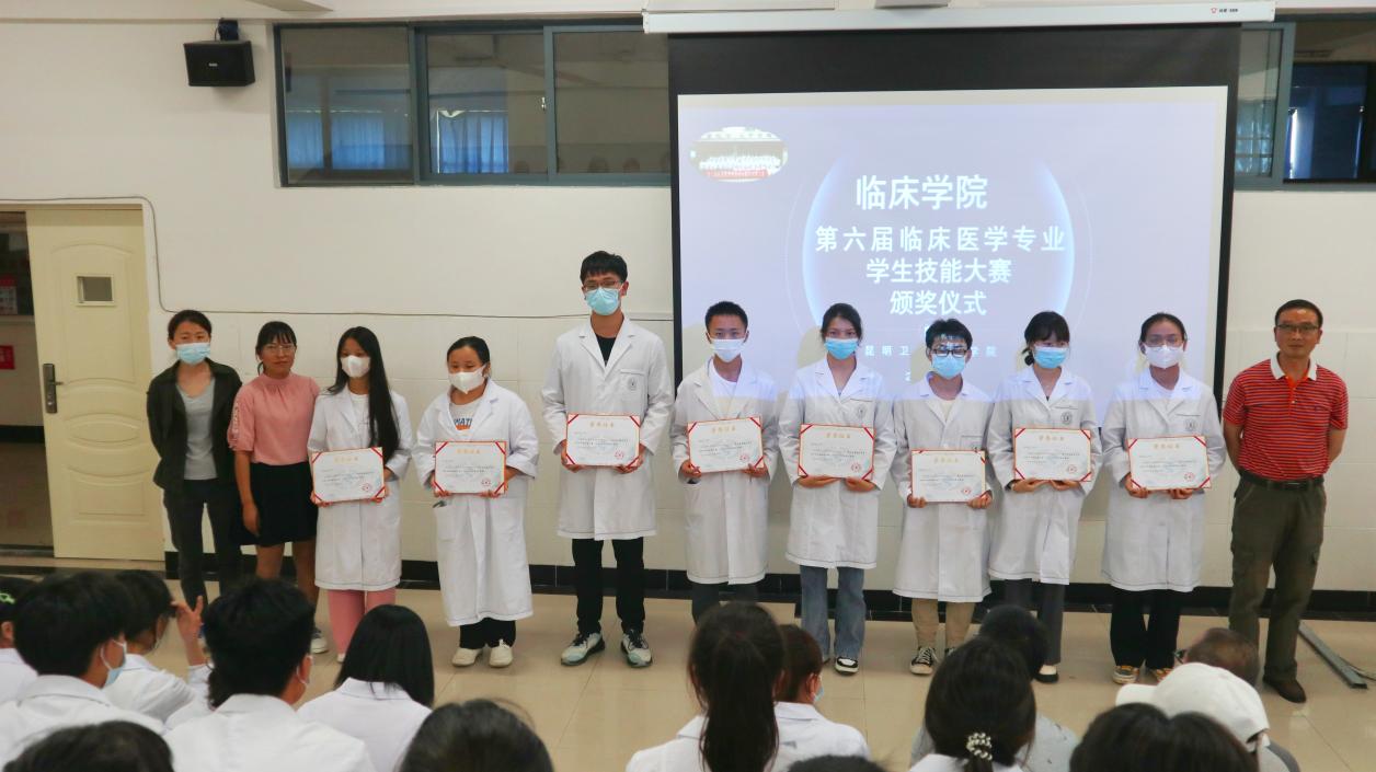 2022年6月1日下午17:40 ,临床学院在213教室举行“第六届临床医学专业学生技能大赛”颁奖仪式。临床学院院长王建松同志、党支部书记赵祥迪同志、副院长李跃平同志、各教研室负责人、全体教学系列教师、2021级全体入党积极分子、2021级部分学生助教代表出席颁奖仪式。