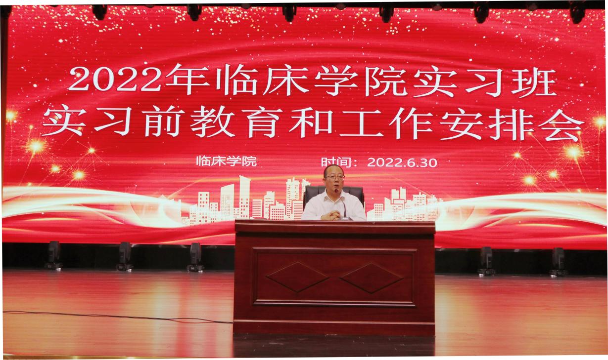 2022年6月30日晚,临床学院组织2023届毕业生在明德会堂召开实习前教育及实习期间相关工作部署会议。学院院长王建松、副院长唐敏及副院长李跃平出席,各实习班辅导员参加大会,会议由综合办赵海燕主持。