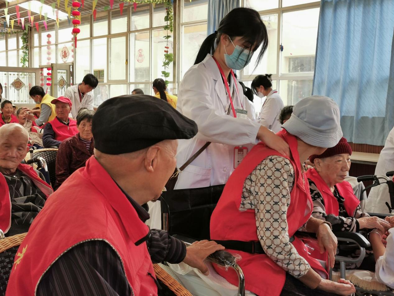 在临床学院唐敏老师和严洪老师的带领下,来自临床解剖协会的55位协会成员和来自临床学院的10位助教参加了此次活动。参与活动的同学分组在四地分别开展了义诊活动。活动内容主要是心肺听诊、测量血压等健康体检,同时为老人提供中医按摩等服务,详细询问老年人的身体健康状况、日常饮食和用药情况,围绕老年人关注的“高血压,高血糖”疾病进行答疑解惑,指导老年人在日常生活中注意健康饮食、规律作息、适量运动,养成良好的生活习惯;并为老人提供水果和面包等。