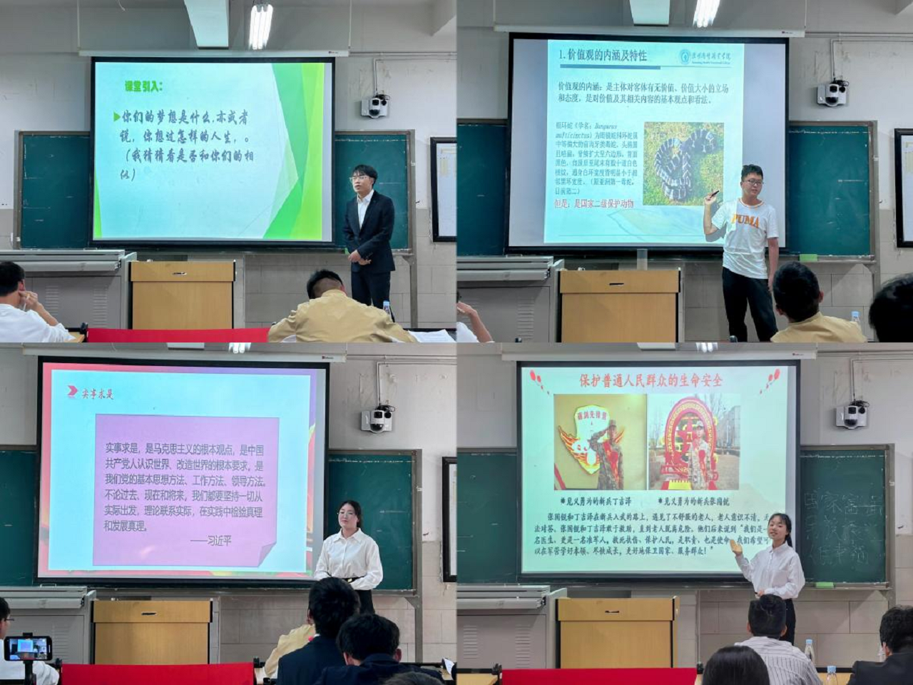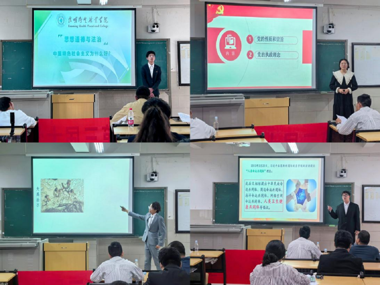 在课堂讲授中,参赛选手们紧扣教材,结合时事案例和医学专业素材,以文化自信为着眼点,讲授传承发展中华优秀传统文化的重要性;或结合生活化的案例辩证阐述正确看待人生观,在新时代新青年的责任担当中成就出彩人生;运用通俗易懂的语言生动鲜明表达了“实事求是”思想。同时,创新教学方法,以问题、视频为课程导入,结合伟人毛泽东和习近平总书记的人民情怀等讲述党自成立以来,始终坚持以“人民为中心”的发展思想,讲授中国梦的内涵要素;以国运线为切入点,从社会主义在中国的诞生、发展和完善对中国社会的影响来看“中国特色社会主义为什么好”。参赛选手们以小切口讲大道理,以丰富的教学内容、灵活的展现形式、自如流畅的语言表达,或娓娓道来或沉着冷静或激情澎湃,从不同角度阐述对所授主题的理解,赢得了阵阵掌声,为现场评委和观众带来了一场场别开生面的思政课。