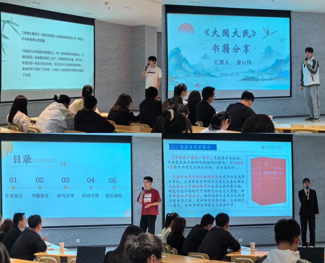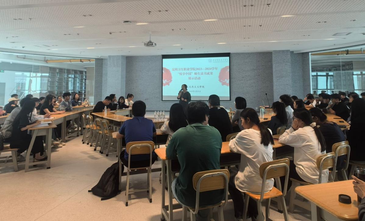 为深入贯彻落实习近平对学校思政课建设作出的重要指示指示精神,彰显文化赋能思政课建设的鲜明导向,丰富校园文化生活,提高学生人文素养,营造积极向上、文明尚读的校园文化氛围。5月21下午,马克思主义学院在新图书馆二楼玻璃房开展“悦享中国”师生读书成果展示活动。马克思主义学院常务副院长苏敏,马克思主义学院直属党支部书记杨登光,图书馆教师杨家美、张洮桃担任本次活动读书“推荐官”,马院全体思政课教师及学生代表共60余人参加本次活动。
