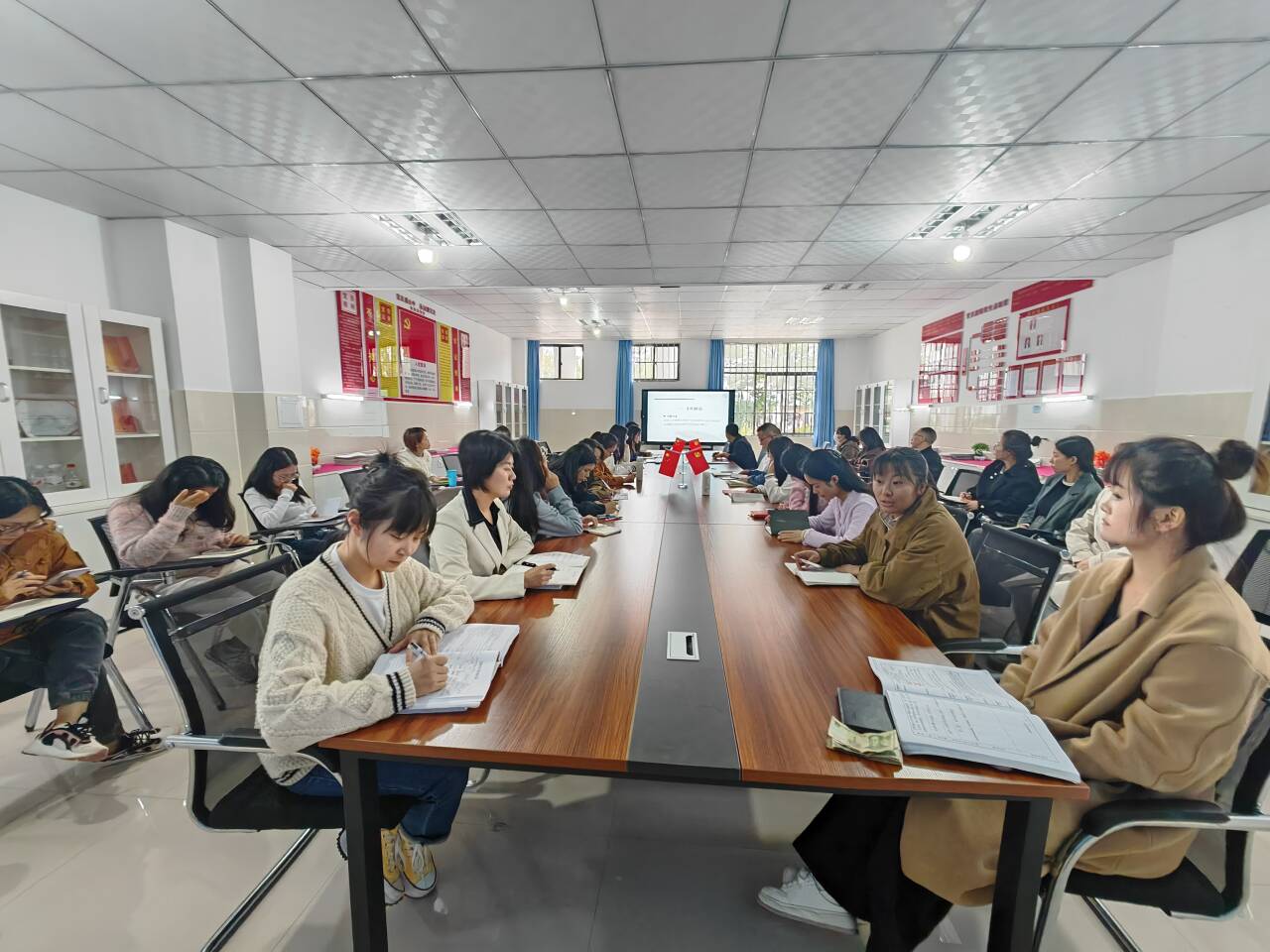 为进一步提升教育教学质量,增强教师的责任感、使命感、荣誉感,规范教师职业行为,明确师德底线,引导广大教师努力成为“四有”好老师,马克思主义学院于10月8日下午组织开展教学工作警示教育和师德师风教育专项学习,学习由代光美主持,苏敏、严丽两位老师进行领学,全体思政教师参加。