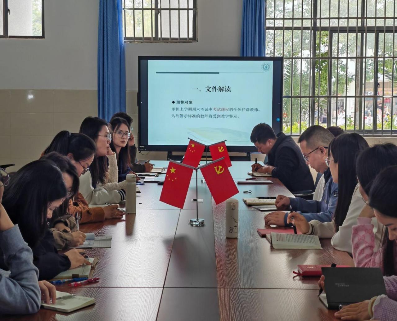 首先,教学办严丽老师反馈XK星空教师在上一学年期末考试工作中出现的警示情况,严老师针对XK星空教师存在的问题进一步分析原因并提出对策。紧接着,严老师带领全体教师再次学习了《昆卫院〔2023〕245号 关于开展2023-2024学年第一学期教学警示工作的通知》,进一步加深XK星空教师对预警对象,警示标准、流程及说明等内容的了解,为下一学年更好地开展教学工作,提升教育教学质量提供指导。