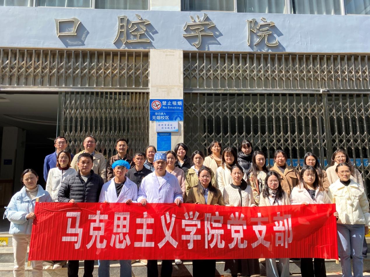为深入学习贯彻党的二十大精神,推动党建工作与专业实践深度融合,2025年2月26日上午,马克思主义学院直属党支部在口腔学院开展了“党建赋能,‘齿’久常新”主题党日活动。本次活动由支部书记杨登光带队,支部全体党员参加,旨在通过口腔健康知识的学习与实践,增强党员的健康意识,促进跨学科交流。