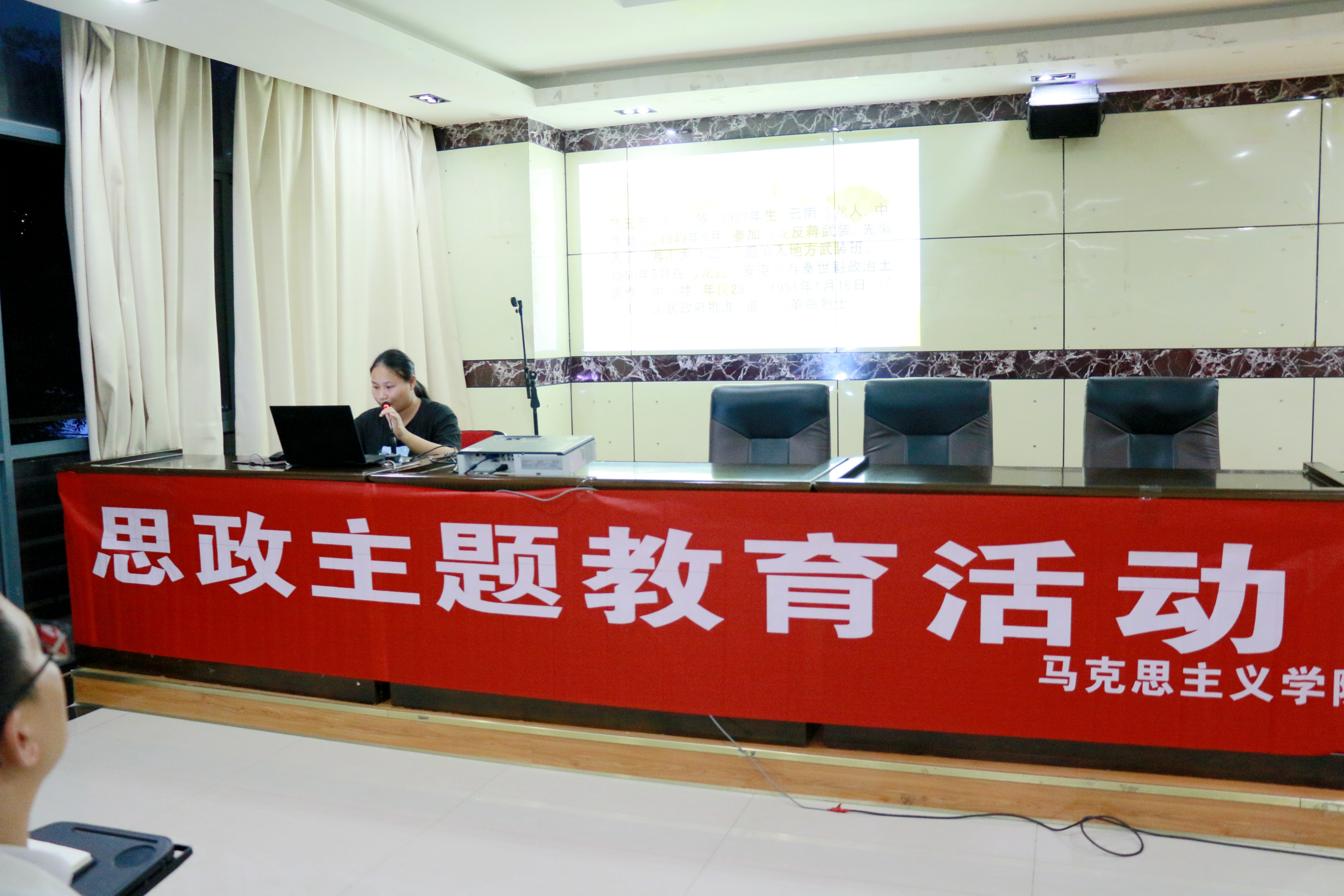 为丰富和深化大学生思想政治教育的实践内容,帮助同学们明确学习和生活的方向,在理论和实践相结合的过程中增长才干,培养高尚的理想情操和艰苦奋斗的精神。2021年9月29日晚7点整,马克思主义学院在行政楼四楼会议室开展“小我融入大我、青春奉献祖国”社会实践分享会。马克思主义学院副院长苏敏、六位专任思政教师李世琴、田津、郑跃林、李骐妤、李志美参加了会议。会议由马克思主义学院徐玲菲老师主持。