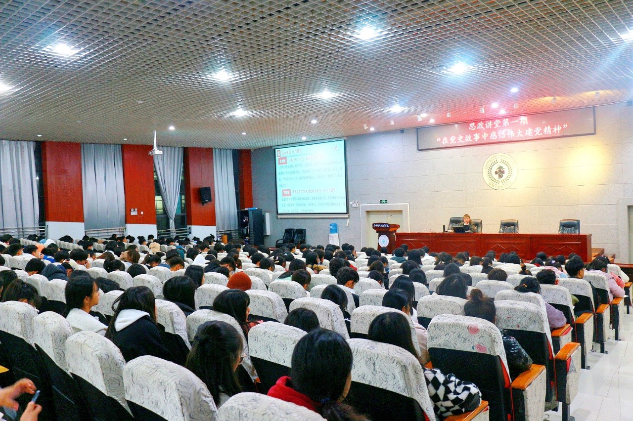 为深入贯彻学习党的十九届六中全会精神,领悟党的百年奋斗历程,不断从党史中汲取前进的智慧和力量,促使青年更加坚定、更加自觉地投入到专业学习和社会建设中。2021年11月24日19:00,XK星空马克思主义学院组织的“思政讲堂”专题讲座在学术报告厅拉开帷幕,首期邀请了马克思主义学院专任思政教师李权作“在党史故事中感悟伟大建党精神”主题讲座,学校各班级学生干部、入党积极分子、大学生宣讲团、易班学生工作站、学校团委、学生会学生社团负责人及学生代表620余人参加。