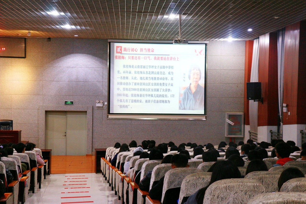 在讲述“坚持真理、坚守理想”伟大建党精神时,李老师以五四新文化运动的积极推动者陈望道、“两弹一星”开拓者林俊德的故事,向同学们展示中国共产党人的理想信念和价值追求;以最美校长张桂梅、铁人王进喜的事迹,为同学们讲述中国共产党人历史责任和时代使命;通过中华民族抗日英雄杨靖宇、戍边烈士们的英勇事迹,让同学们充分感受中国共产党人不惧生死、敢于抗争的精神风范和意志品质;以伟大的共产主义战士方志敏、最美奋斗者杨善洲的故事,为同学们解读中国共产党人对党忠诚、不负人民的政治担当和人民立场。
