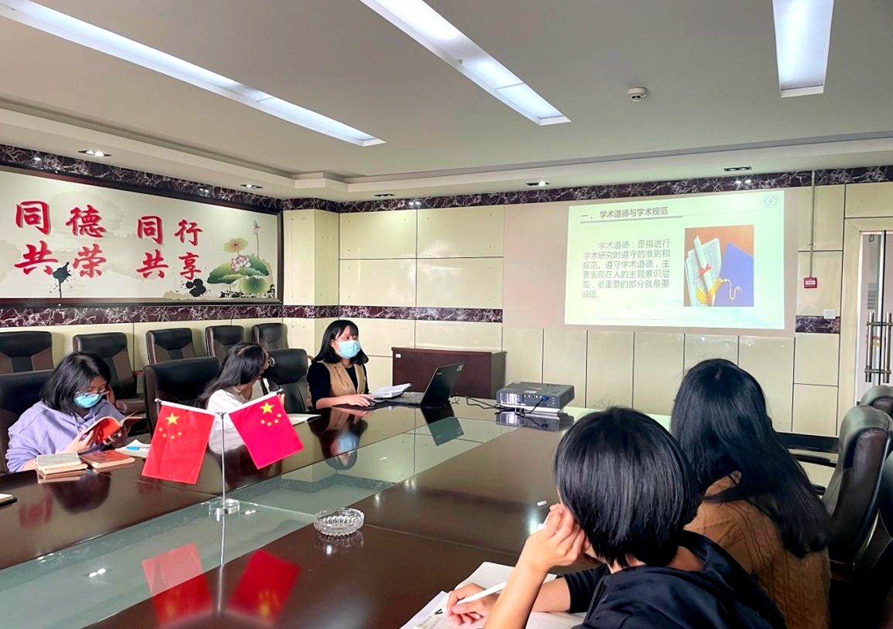 紧接着,思政教师张晓婷从学术道德与学术规范的内涵、学术腐败和学术不端的行为两方面,带领各位教师学习学术道德与规范的相关内容。张老师从法律角度对学术不端的惩罚进行详细说明,并运用鲜明的真实案例对剽窃、伪造、篡改等学术不端行为进行分析解释。
