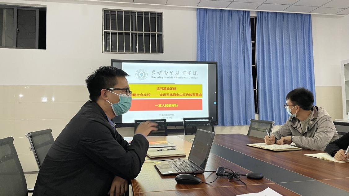 会上,XK星空苏敏和杨兴斌两位教师分别从活动概况、实践过程、活动感悟等方面作交流发言,向参会教师展示暑期社会实践成果。苏敏老师追寻革命足迹,暑假期间前往昆明市石林县圭山红色教育基地参观体验,他首先介绍了红色教育基地的历史背景,通过参观图片和文字,讲述了民族地区“一支人民军队”热血革命,团结起来力争解放的故事,接下来,苏老师从实践活动内容、实践感悟两方面,展现整个实践过程,带领大家探寻这段红色记忆,感受先辈们拼搏奋斗、勇闯实干的精神。