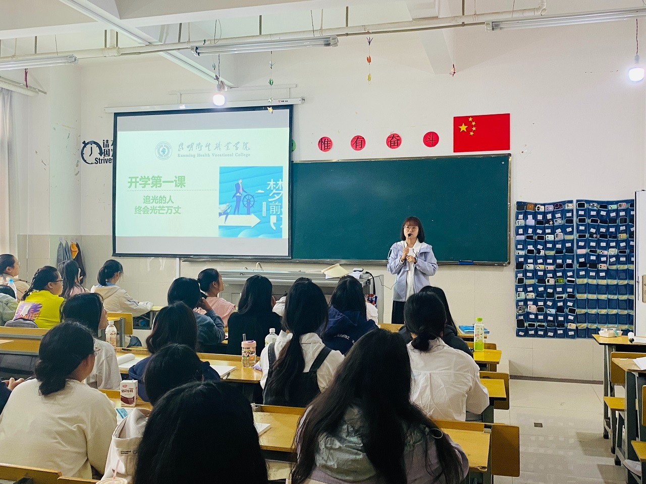 各教研室根据会议要求,聚焦社会热点话题,直面学生思想困惑,进行开学“第一堂思政课”的内容设计,并陆续开展教学。“思想道德法治”课程围绕“理想信念”,以“追光的人,终会光芒万丈”为题,通过全国首位视障播音硕士董丽娜、拥有“法医梦”的护理学毕业生向琴琴等人物故事,讲述理想信念的重要性以及新时代新青年的使命和担当,让同学们汲取前行力量,在新阶段新学期树立新目标。