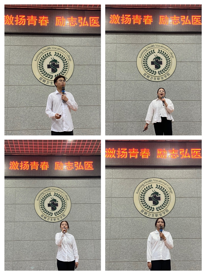 本次宣讲由黄云、王明伟、高源、张嘉慧四位同学们逐一进行。第一位宣讲人黄云以“青春向党,提灯筑梦”为主题,告诉我们只有在不懈的追求和奋斗中青春的价值才能浓墨重彩的写在我们名叫“人生”这本书上,让这一路沿途的风景才能更加让人印象深刻。第二位宣讲人王明伟围绕“铭记初心,整装出发”提出青年要有理想,心中要有阳光,脚下要有力量,将理想与家国情怀相结合,要以昆卫学姐陈梦雪为榜样,践行青年在医学工作上的责任与担当。第三位宣讲人高源以“让大医精诚融入青春热血”向同学们分享了顾方舟先生将毕生奉献我国医学事业的故事,告诉同学们只有将青春翻涌才能并发出无限的可能,才能在我们的人生中留下一朵璀璨绚丽的花,当代青年医学生要将大医精诚的精神融入我们的热血青春当中。第四位宣讲人张嘉慧以“青春奋斗正当时,不负韶华不负己”为主题的宣讲呼吁大家要做眼里有光,心中有梦的有志青年;做脑中有策,手上有招的有识青年,要主动投身社会实践,将专业知识转变为救死扶伤的本领。