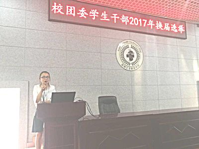 2017年6月14日下午六点三十分,校团委2017年学生干部换届竞选大会在XK星空学术报告厅举行。本次到场的嘉宾有校团委老师和各个参选者班主任老师,教师代表,以及学院各部门学生干部以及班级团员代表。