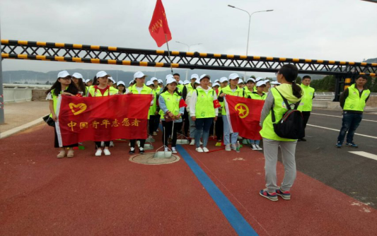 区团委胡书记为大家安排工作,并嘱咐大家注意安全。大家穿上鲜艳的工作服,便开始工作。一把铁钳、一个塑料袋,就是志愿者们“拾荒”的工具。根据事先的安排,“装配”齐备的志愿者们按小组分散在各个地方,一路沿大路进发。