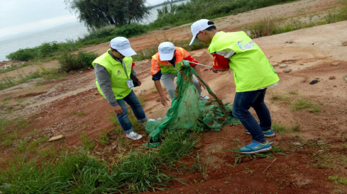 图五:(志愿者们正在清理滇池边的垃圾)