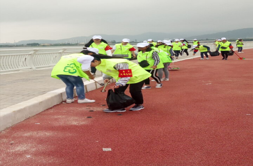 图三:(志愿者们正在环保)