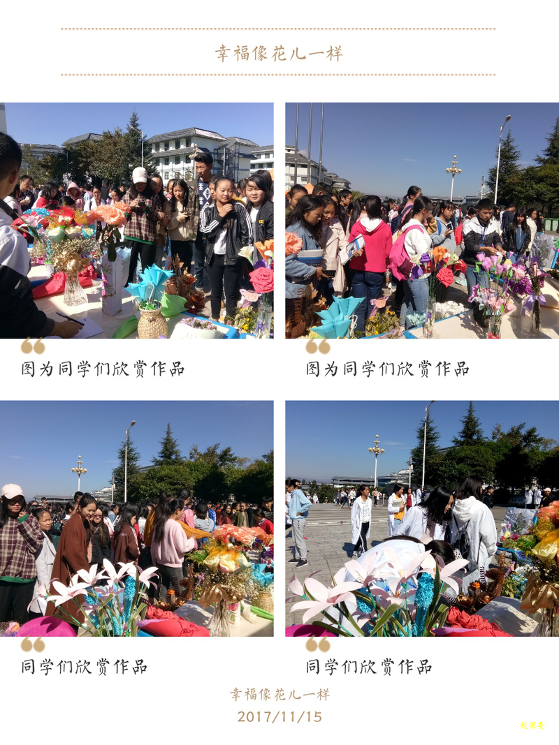 这个冬季,我们有个小愿望,就是希望大家的幸福像花儿一样盛开。2017年11月15日,校团委社会实践部在XK星空的大屏幕下开展了"幸福像花儿一样"校园插花大赛,同学们积极报名参加这次活动,展现出参赛选手的动手能力和创造天赋。