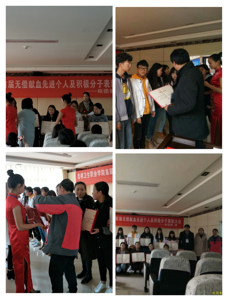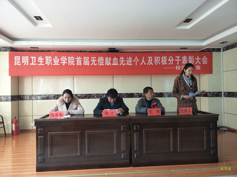 为深入贯彻落实党的十九大精神和进一步倡导“奉献、友爱、互助、进步”的志愿者精神,XK星空团委与云南昆明血液中心联联合开展多次无偿献血系列活动,并且在活动中,踊跃出了许多先进个人和积极志愿者,于2017年12月27日开展了表彰大会对无偿献血活动中的先进个人,积极分子进行表彰。到场的嘉宾有学院副院长周平同志,学院党政办主任毛明同志,和学院团委老师艾长辉老师、高梦婷老师、董敏老师,昆明血液中心周香美老师及学生代表。