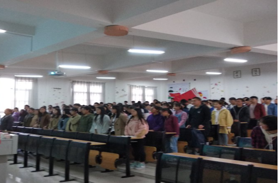 首先,主持人宣部会议正式开始并介绍莅临本次会议的嘉宾老师。伴随着团歌声,全院所有团支部全体起立,他们昂首挺胸,庄严肃穆!