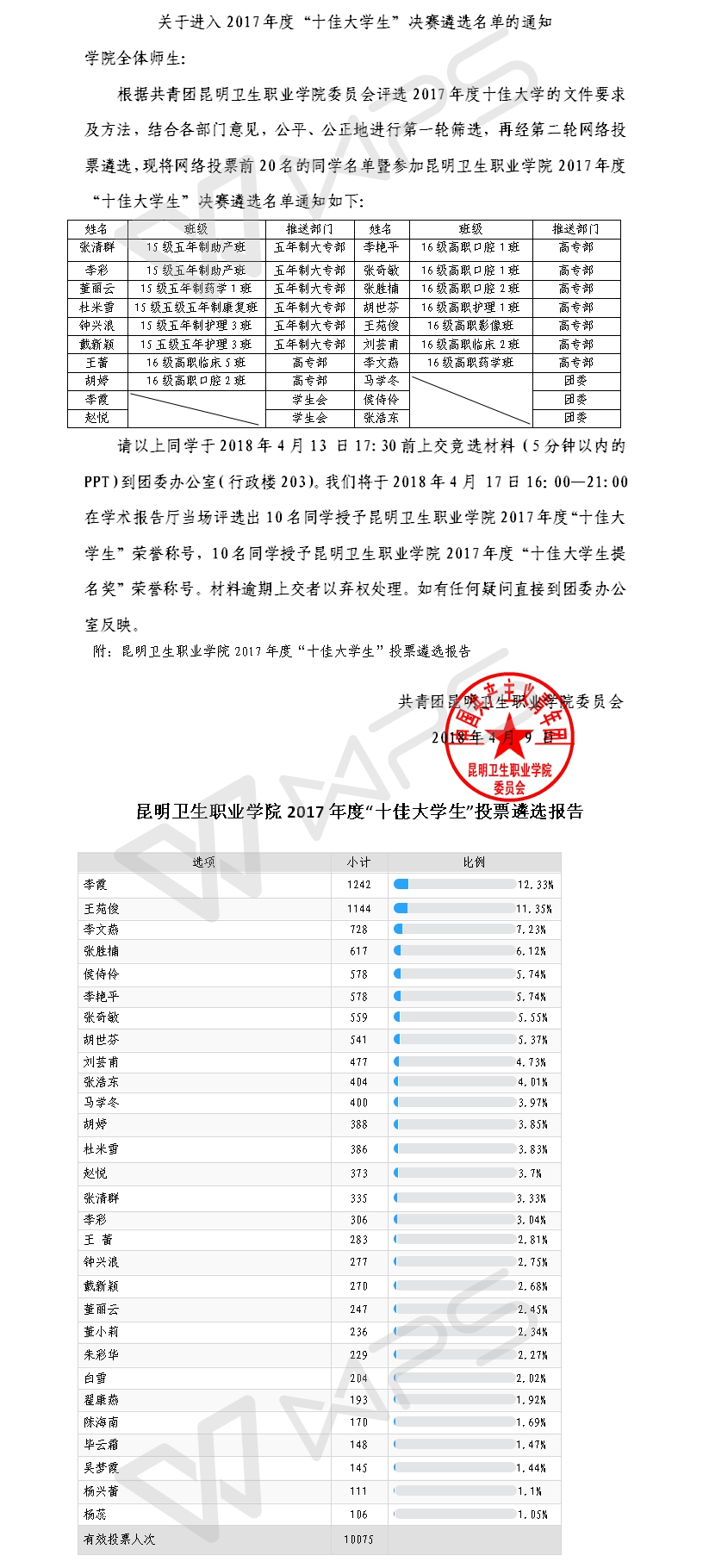 关于进入2017年度“十佳大学生”决赛遴选名单的通知