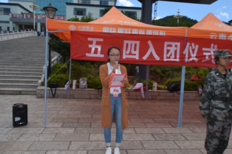 其次,校团委书记发表了热情洋溢的讲话,她向新入团的团员表示祝贺,表示入团是人生的新起点并不是终点。接着,校团委书记向新老团员提出要求:一是要积极相应共青团的号召,踊跃参加爱国主义教育;二是要珍惜青春年华,锐意进取,不断提高自己的综合素质;三是要充当先锋,把在团旗下的誓言作为行动的先导,传递正能量。