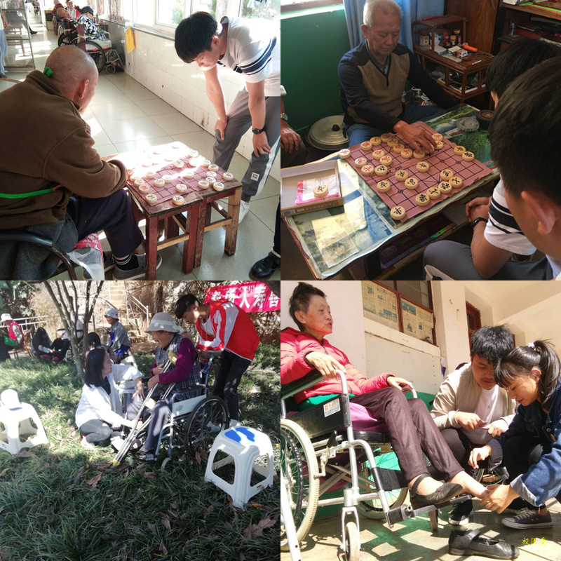 作为当代大学生,我们就该明白:尊老爱幼是中华民族的传统美德,为进一步加强和改进大学生的思想道德教育建设,弘扬中华民族尊老、敬老的传统美德,努力营造社会和谐的良好氛围,让大学生们以实际行动为老人家送温暖、献爱心,为创建和谐社会贡献青春力量。尊老敬老是中华民族几千年来的良好传统,作为炎黄子孙,我们更应该爱老,发扬老祖先的良好传统。爱老敬老是中华名族的传统,让我们学会爱老敬老。于2018年10月19日棋缘社在晋宁区古城镇敬老院开展敬老爱老活动。
