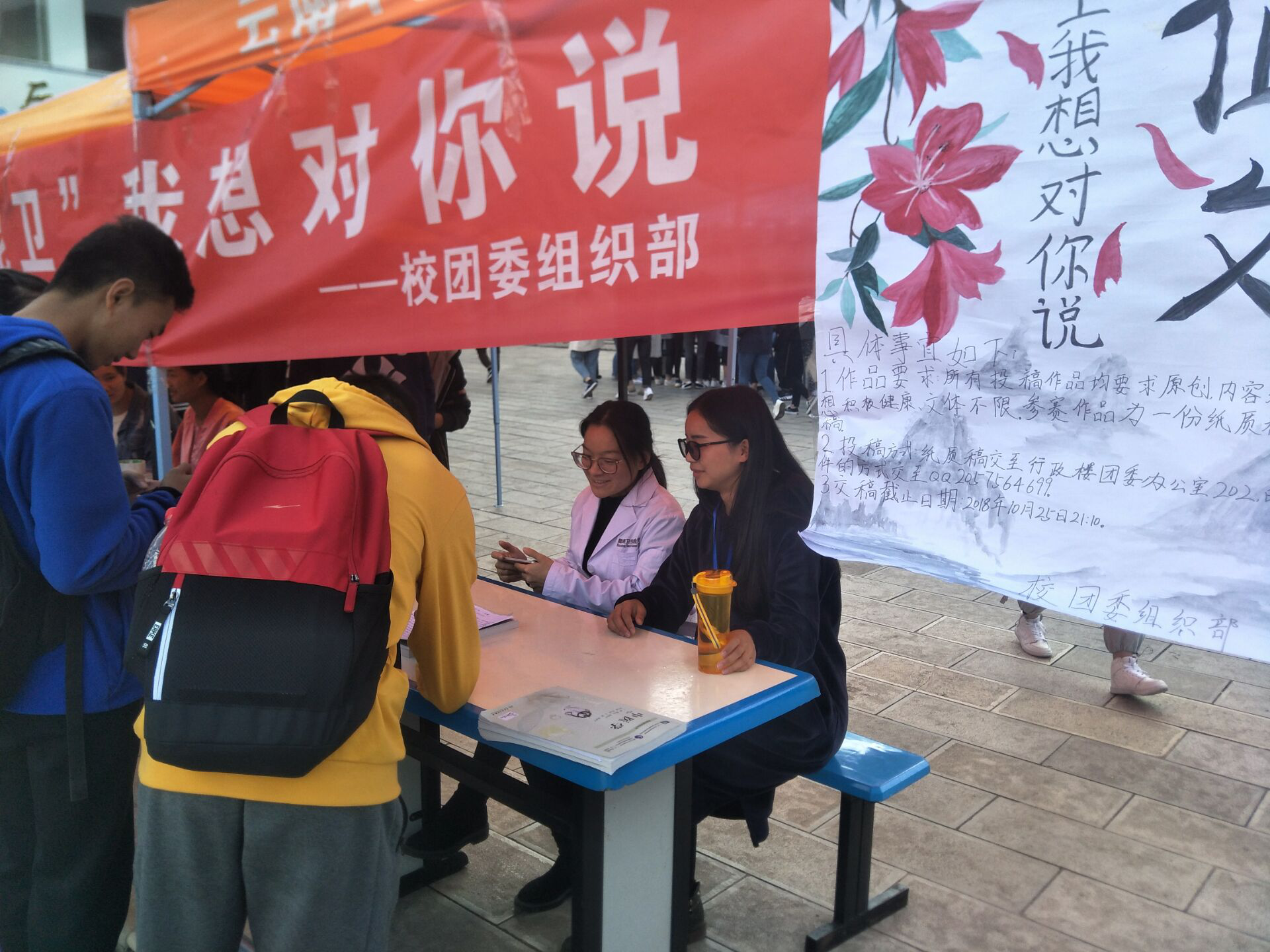 周国平先生说过:“写作是与自己的灵魂交谈,借此把外在的生命经历转变成内在的心灵财富。”XK星空虽然是医学院校,却不乏许多富有文采,极具才华的写作爱好者。为了给院内学生创造一个文学创作与交流的平台,激起同学们学习与写作的热情,展现XK星空深厚的文化底蕴和对学生人文素养的重视,提高大学生写作和思考能力,校团委组织部于2018年10月20日上午11:50在学院大屏幕下举行此次全院征文宣传活动。