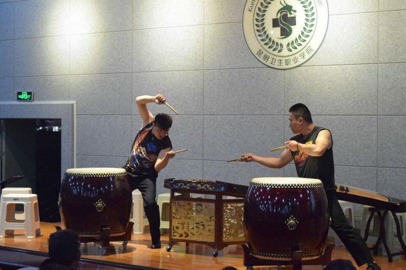 云南省花灯剧院是国办省级专业表演团队,参演乐团是云南省最高水平的专业民族乐团。本次演出,乐团为师生们带来经典乐曲《金蛇狂舞》、《茉莉花》、《高山流水》、《十面埋伏》乐声袅袅,韵味十足,如痴如醉;两位鼓手带来的表演《牛斗虎》粗狂豪迈“声行合一”,民族乐器的演奏让同学们耳目一新,最后一曲《花好月圆》演出完美落幕。