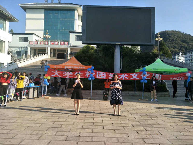 樱花三月,迎着和煦的春风,大学生艺术团迎来了第一个文化周。于2019年3月21日在大屏幕下举行。本次活动丰富了校园文化,营造了良好的艺术氛围。