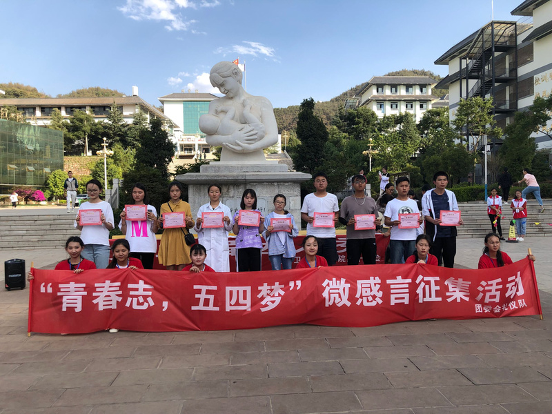 2019年4月29日,礼仪队通过各班团支书,向各个班级宣传了此次微感言征集活动,征集青春微感言,感言为一句话,字数控制在30 字以内,内容以弘扬五四精神,展现五四青春魅力为主题。此次活动吸引了很多同学参与进来,通过微感言的形式,表达了自己的爱国情怀及对五四精神的理解。
