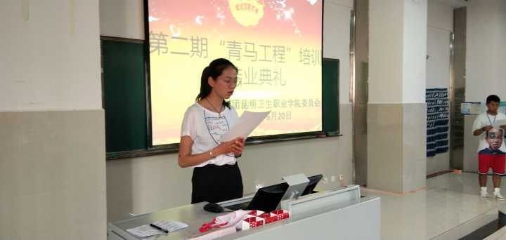 团歌奏唱完毕后,团委办公室主任董敏老师为第二期青马工程结业仪式致辞。董主任向青马班结业的学员表示祝贺!其次,董主任指出,此次只是学习过程的一小点,并不是学习的终点。大学生骨干要有担当、有奉献精神和责任意识,培训班结束回到各自学生组织后,要将在培训班所学带到同学当中去,要将培训班的精神传承下去,为XK星空学生工作和人才培养做出更大贡献。她对所有学员表达了殷切的期望,希望各学员能够持之以恒,朝着成为优秀的青年马克思主义者而不懈奋斗。