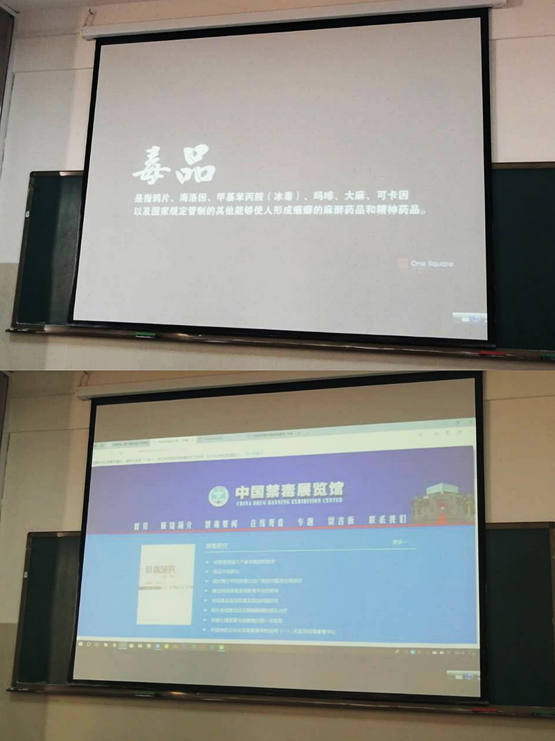 在团委办公室同学的带领下学习了毒品知识、毒品的危害和如何拒绝毒品,他们运用PPT课件为同学们讲授毒品相关知识,向同学们展示毒品模型,帮助大家认识新型毒品,了解毒品的危害;学会拒绝毒品,增强自我保护和防范新型毒品的意识,取得了良好的宣传效果。